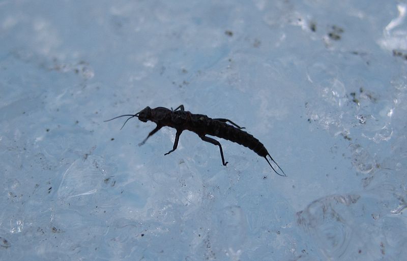 Ninfa de Andiperla willinki, un insecto que podemos encontrar en glaciares patagónico. Crédito: Paultoff.