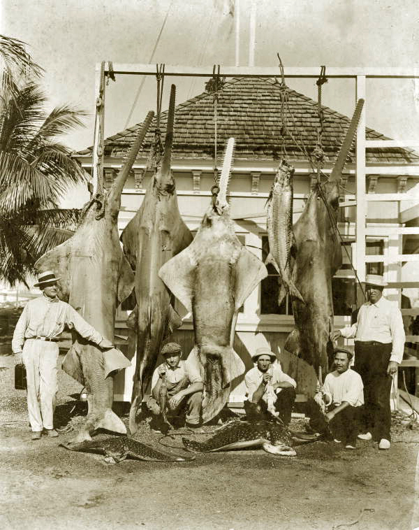 🐟 En esta fotografía vemos a pescadores de Miami posando junto a peces sierra, sábalos y rayas leopardos en la década de 1920. Según un estudio, llevado a cabo por investigadores canadienses de la Universidad Simon Fraser, los peces sierra han desaparecido de la mitad de las aguas costeras del mundo. Además, las rayas se estarían enfrentando a la extinción local también debido a la sobrepesca 😢