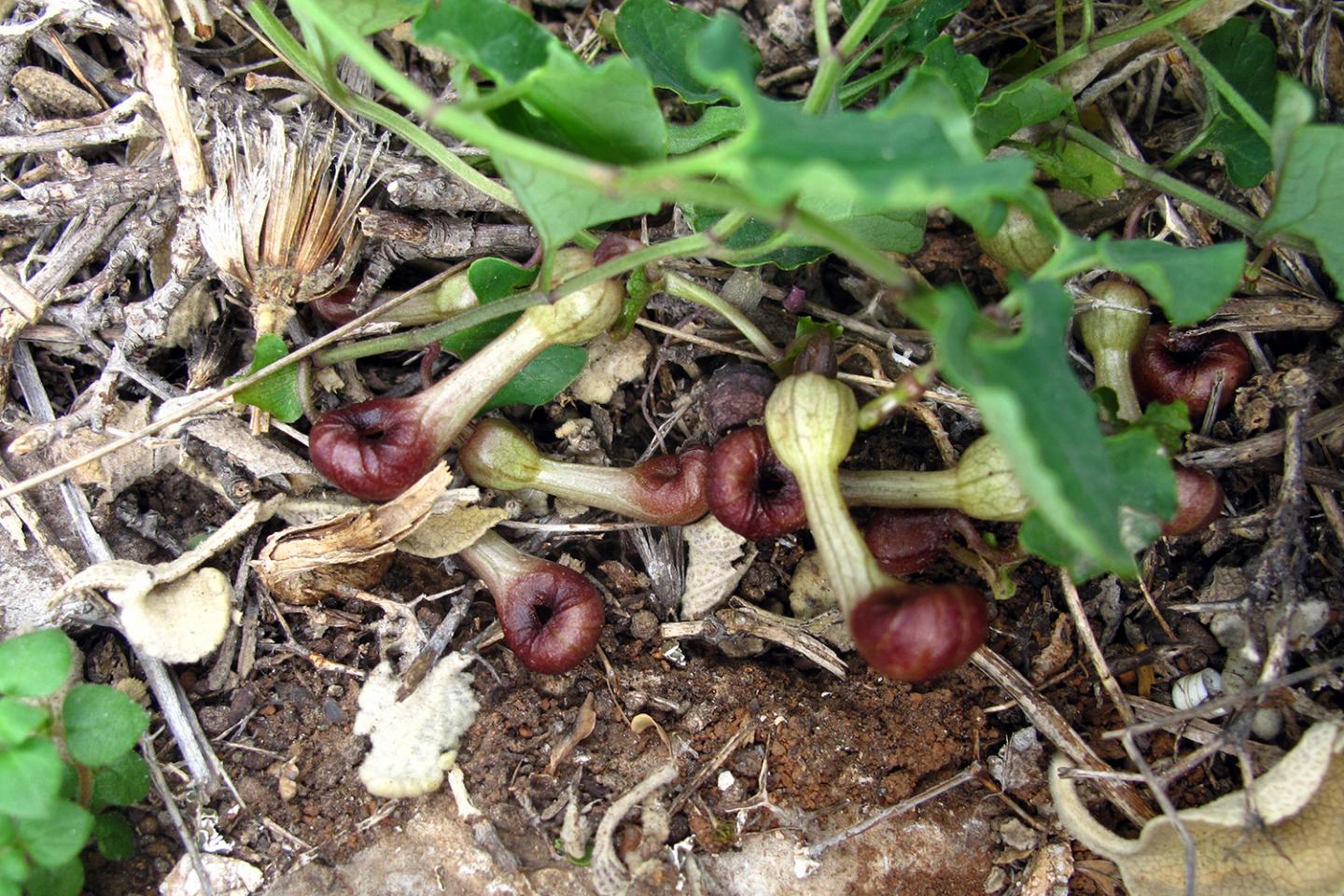 🌺 Aristolochia microstoma no se encuentra entre las flores más vistosas. Crece a ras del suelo, a veces casi oculta entre la hojarasca o incluso las piedras. Su color, apagado y parduzco, tampoco es que sea muy llamativo. Casi podríamos decir que intenta pasar desapercibida. Aunque realmente a esta especie no le importa qué pensamos de ella, le basta con engañar a unas diminutas moscas 🤨