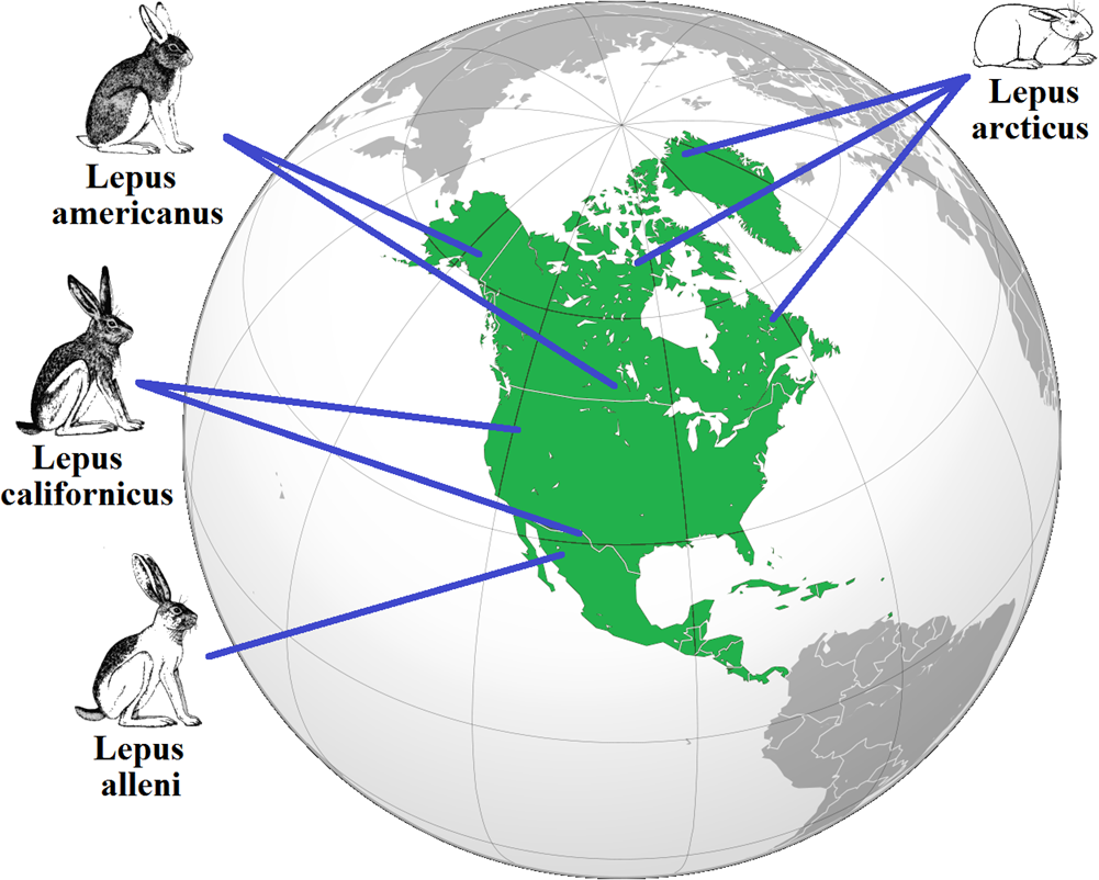 🐇 Veamos ahora una segunda regla. En 1887, el zoólogo estadounidense Joel Asaph Allen desarrolló la conocida como regla de Allen, la cual establece que la forma del cuerpo de los animales endotermos varía según el clima. De esta forma, en los climas cálidos las especies tienen apéndices más grandes para así tener mayor superficie y perder calor. Por ejemplo, las orejas de las liebres disminuyen de tamaño si vamos en un gradiente desde México hasta el Ártico ❄️