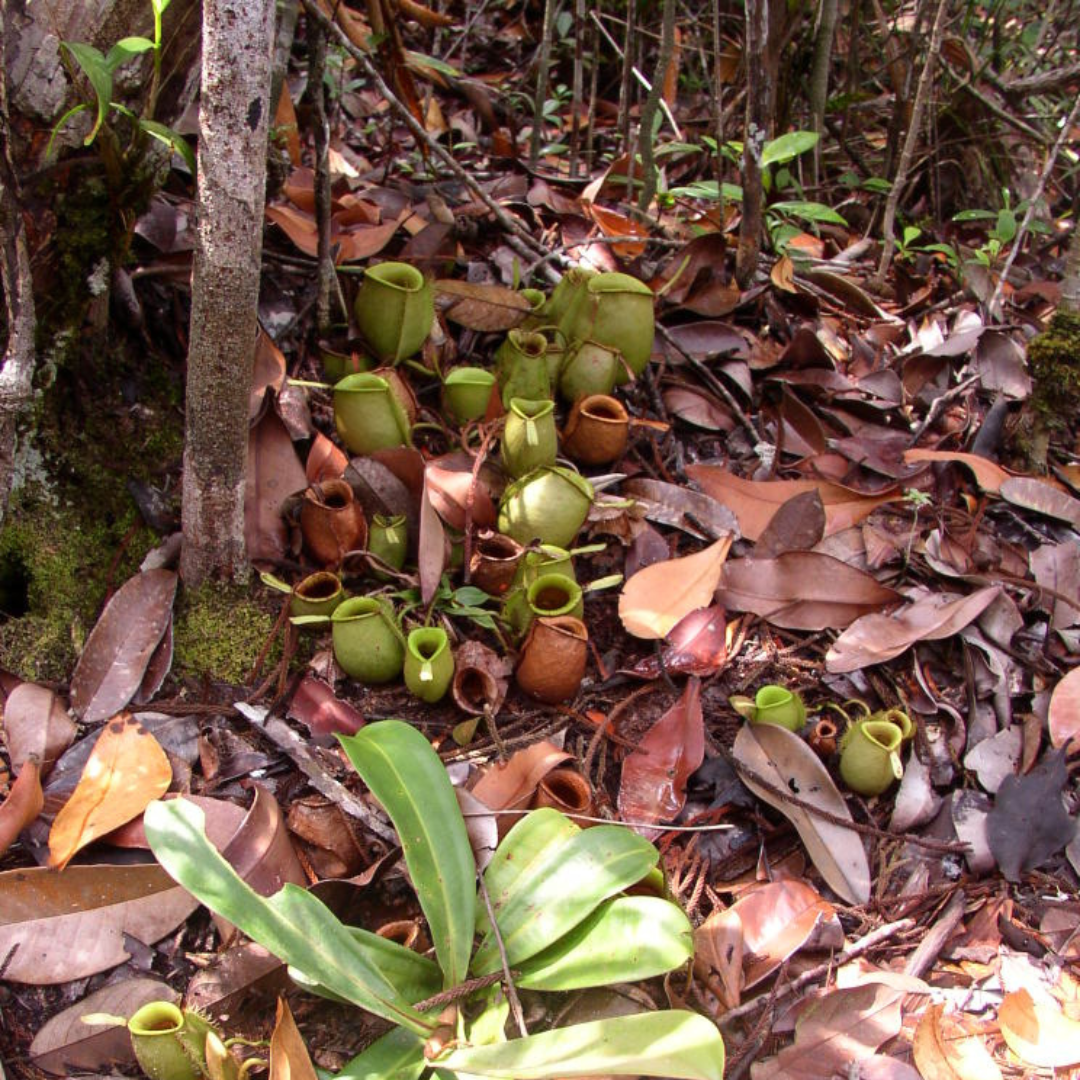 🤔 ¿Hasta dónde puede llevar la evolución a las plantas Nepenthes? Existen casos de plantas carnívoras que, en cierta manera, han optado por dar media vuelta y adoptar la vida típica de una planta. Otro caso curioso es Nepenthes ampullaria. Dicha especie adquiere gran parte de sus nutrientes gracias a la digestión de las hojas que caen al suelo del bosque. Es decir, es una planta carnívora cuyo menú es fundamentalmente detritívoro 😮