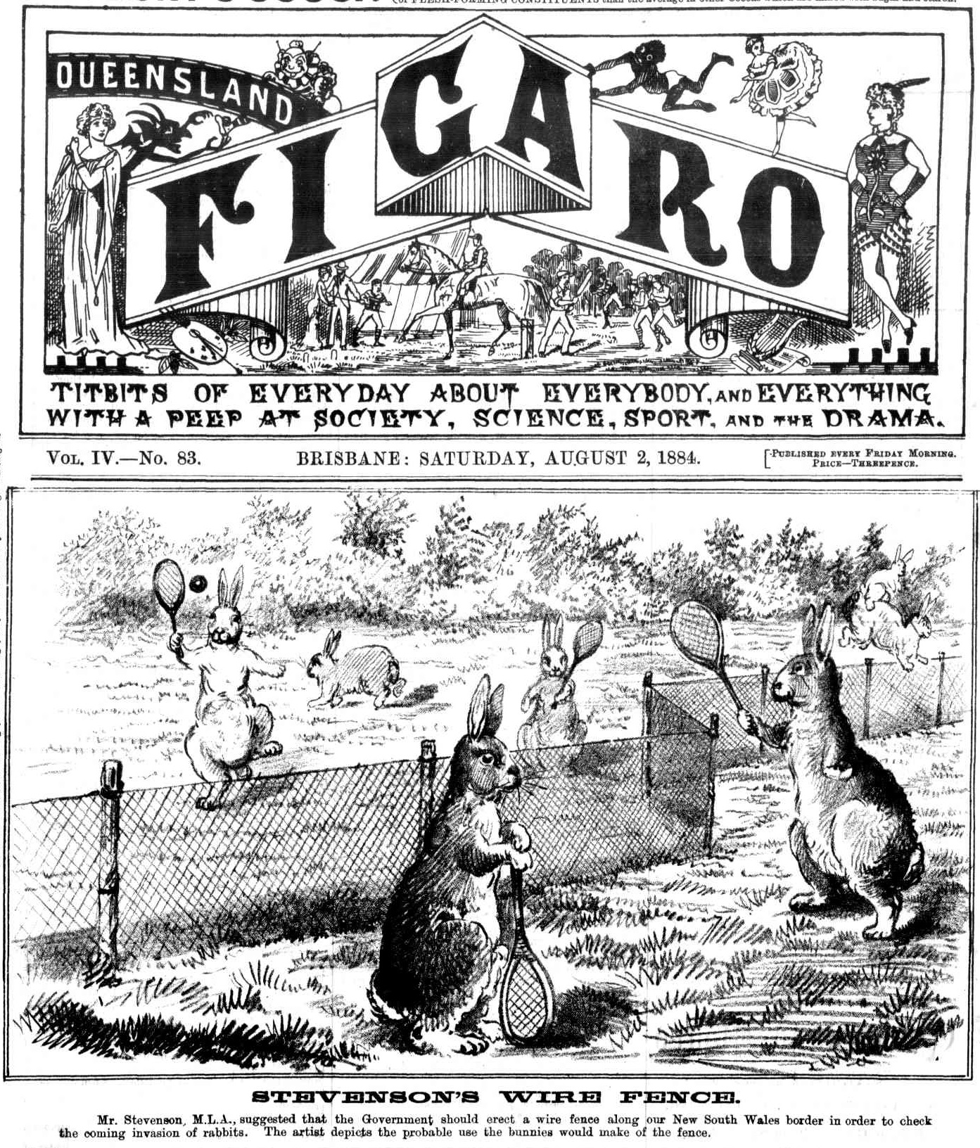 😂 La sugerencia fue recibida con cierta sorna entre sus contemporáneos. En el periódico The Queensland Figaro publicaron esta viñeta, donde describen el probable uso que harían los conejos de la susodicha valla: jugar al tenis 🎾
