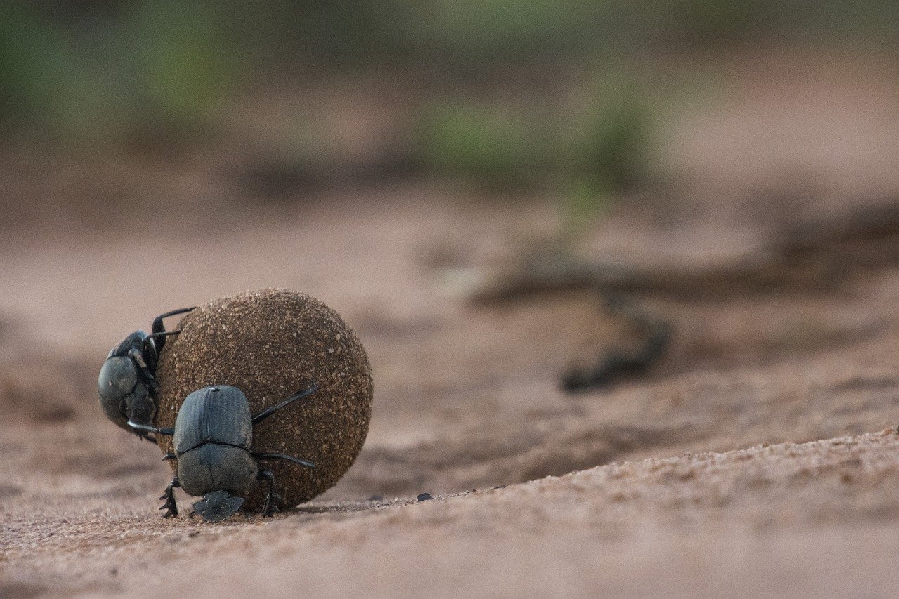 🪲 La habilidad más famosa de los escarabajos peloteros no necesita presentación. Estos coleópteros son diestros a la hora de hacer bolas con excrementos ajenos para celebrar banquetes. La susodicha materia también es muy importante durante la reproducción, ya que con ella confeccionan las conocidas como bolas de cría. Las hembras ponen un huevo en cada uno de estos pestilentes habitáculos, después de enterrarlos, asegurando así el futuro sustento de sus retoños. Marcus Byrne, entomólogo de la Universidad del Witwatersrand, describe dicha estrategia de la siguiente manera: «La bola de cría es un vehículo que utilizan los escarabajos adultos para transmitir sus genes a la siguiente generación» 💩