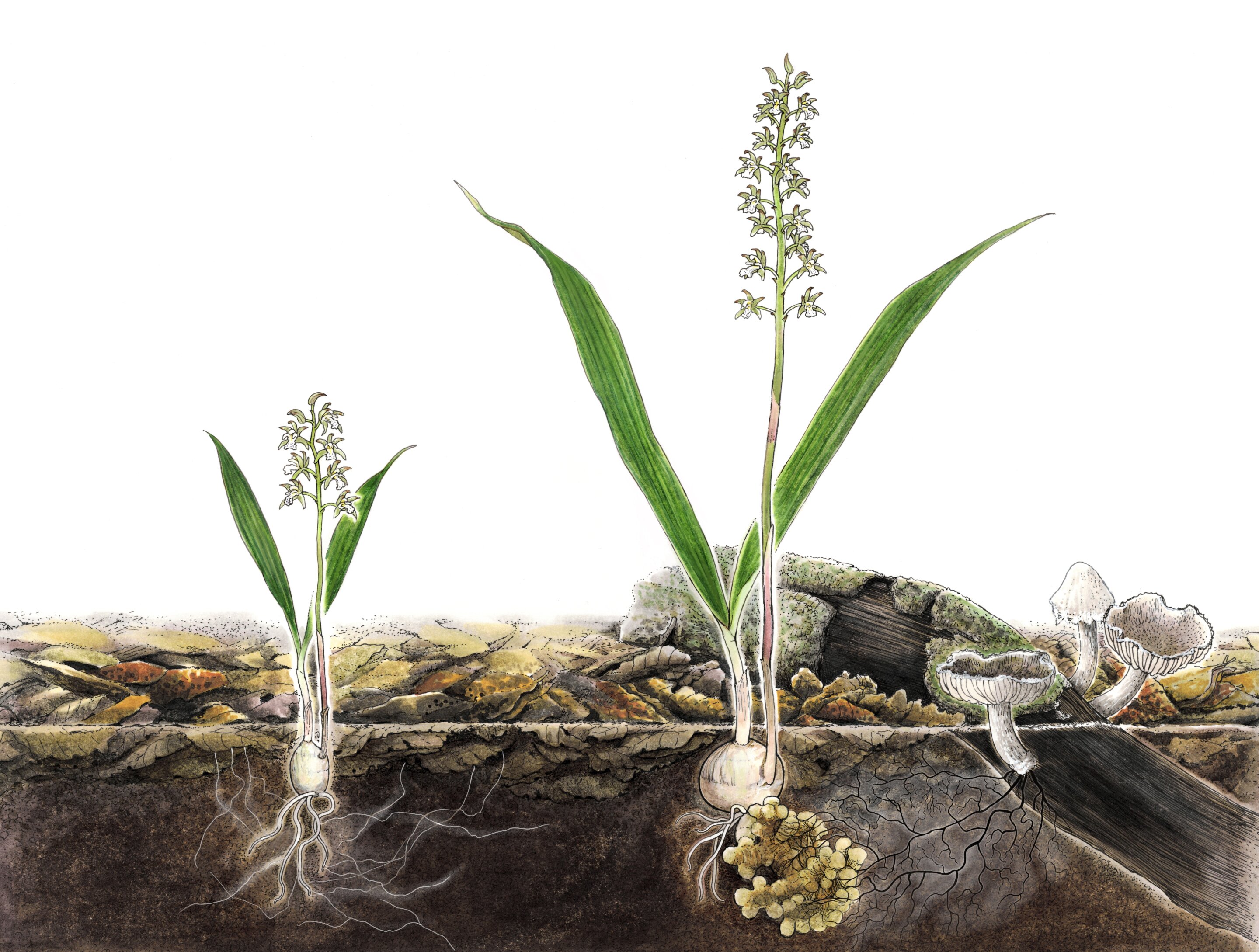 🍄 Según un estudio de la Universidad de Kobe, cuando estas orquídeas crecen cerca de madera podrida, desarrollan raíces en forma de coral que les permiten centrarse en los hongos especializados en descomponer materia orgánica. Al hacerlo, no solo dejan de depender de la fotosíntesis, sino que abandonan a sus hongos simbióticos tradicionales para aprovecharse de los descomponedores, obteniendo así nutrientes extra que impulsan su crecimiento y producción de flores 🪵
